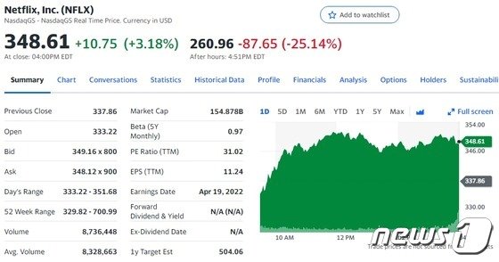 앞서 넷플릭스는 정규장 마감 직후 실적을 발표했다. 넷플릭스는 실적 발표에서 10년 만에 처음으로 회원 수가 감소했다고 밝혔다.