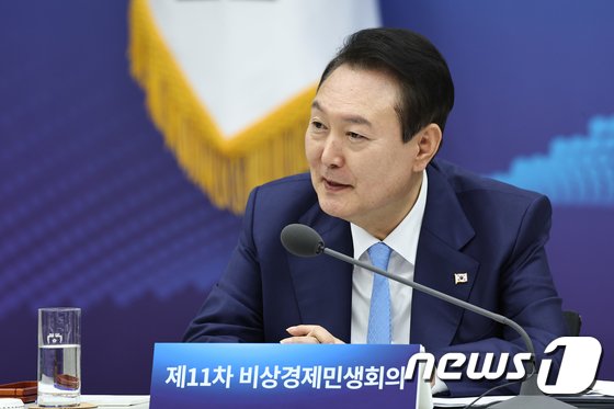 윤석열 대통령이 27일 용산 대통령실 청사에서 생중계로 진행된 제11차 비상경제민생회의를 주재하고 있다. (대통령실 제공) 2022.10.27/뉴스1 © News1 오대일 기자