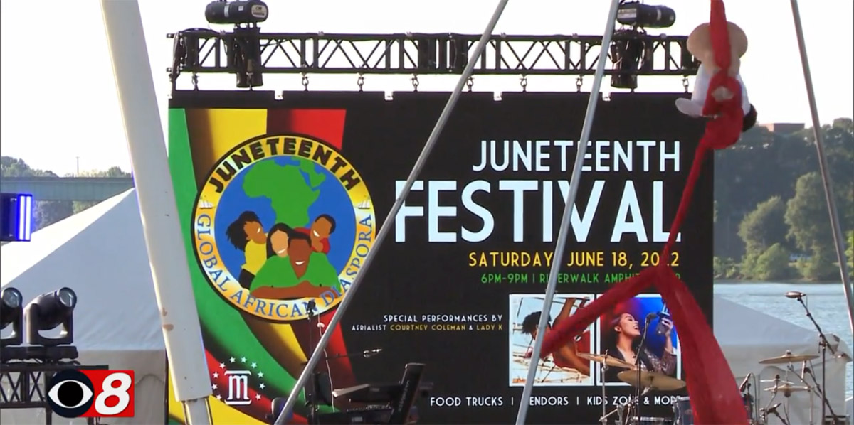 수백 명의 사람들이 토요일 강변에서 몽고메리 시의 제2회 노예해방절 기념 행사를 위해 모였다.