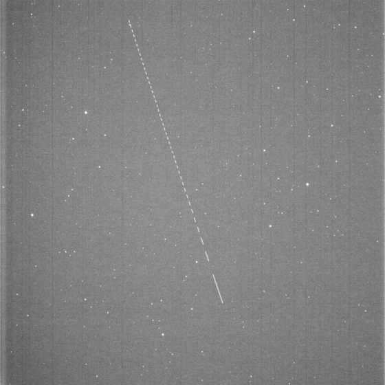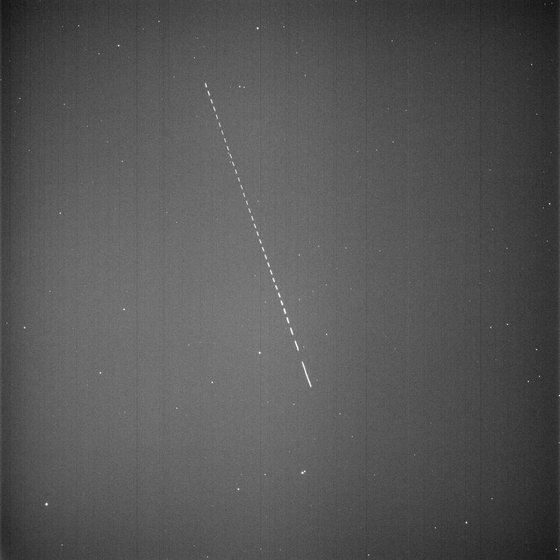 한국천문연구원 우주물체 전자광학 감시 시스템(OWL-Net)으로 관측한 누리호 더미위성 모습. (천문연 제공)