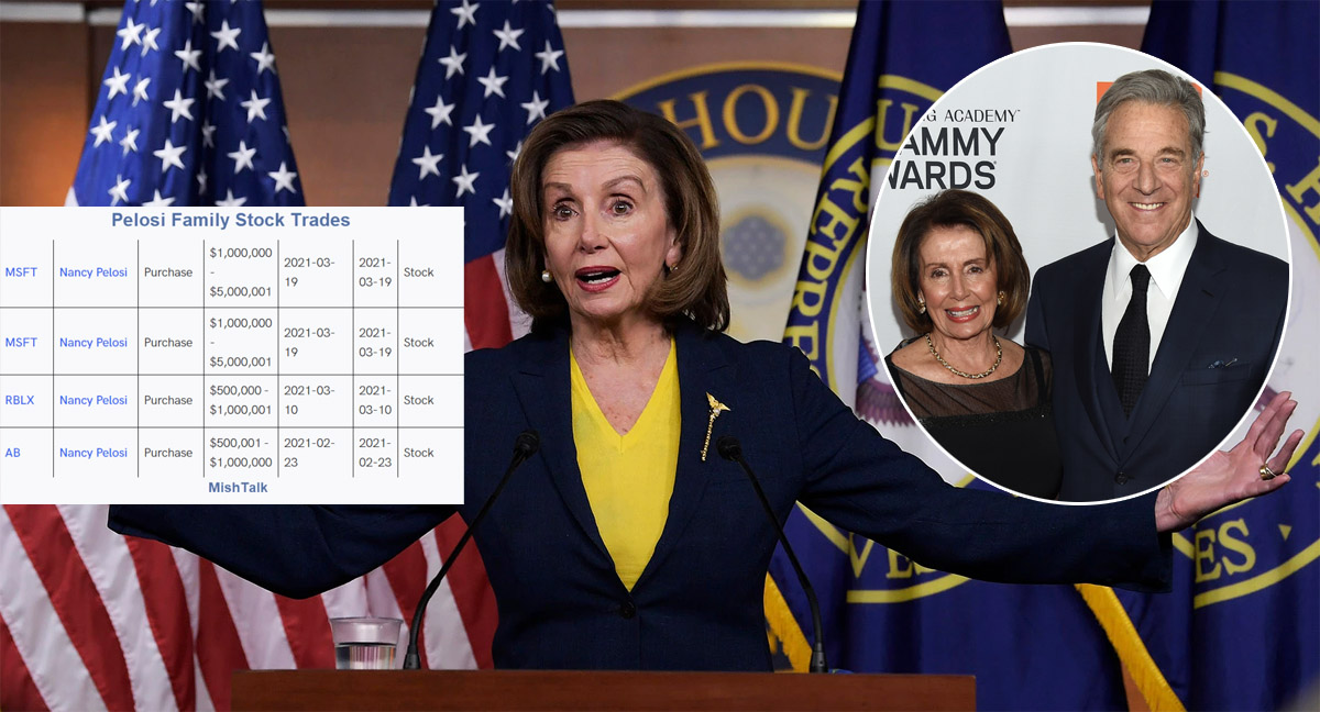 수십 년간 공직 생활을 한 펠로시는 4천만 달러에서 2억5200만 달러 사이의 예상 순자산을 축적했으며, 최근 그녀의 가족은 구글, 세일즈포스, 마이크론 테크놀로지, 로플록스와 같은 회사에 주가가 올라갈 것이라는 데 배팅하는 콜옵션에 수백만 달러를 투자했다.