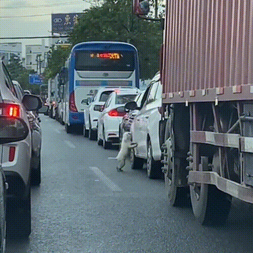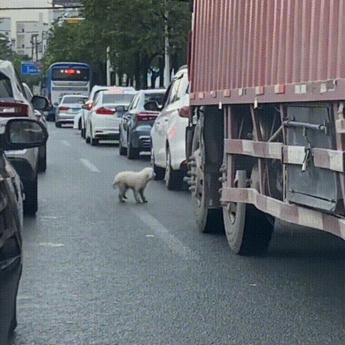 하지만 문은 다시 열리지 않았고, 꽉 막힌 도로 속에서 차는 조금씩 앞으로 움직였다. 남겨진 강아지는 트럭에 치일 뻔하고, 지나가던 오토바이 운전자가 발로 차려고 하는 등 계속해서 위험한 상황에 놓여있다.