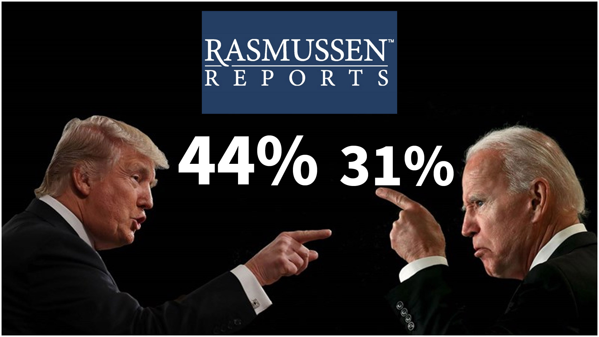 라스무센 리포트(Rasmussen Reports)가 최근 발표한 여론조사에 따르면, “다음 중 당신의 정치적 견해를 가장 잘 대변하는 정치인은 누구인가?”라는 질문에 대해, 유권자 중 44%가 트럼프를, 31%가 바이든을 꼽았다.