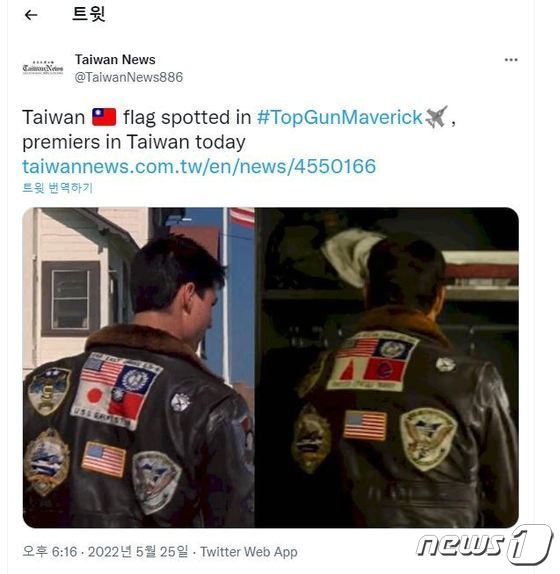 톰 크루즈가 탑건의 새로운 시리즈 ‘탑건 매브릭’에서 대만 국기가 그려진 항공 점퍼를 입은 모습이 그대로 노출돼 화제다.