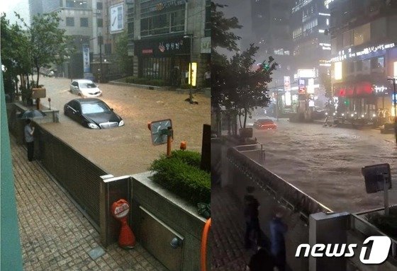 사진 속 건물은 서초구 서초동에 있는 청남빌딩으로, 지난 2011년 집중호우 피해를 막아 화제를 모았다.