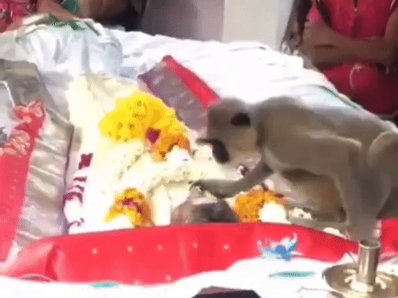 이 원숭이는 라잔으로부터 정기적으로 먹이를 받아먹고 있었다. 그러나 지난 17일 라잔이 병으로 세상을 떠나 장례식이 진행됐고, 평소처럼 라잔의 집을 찾아간 원숭이는 어리둥절했다.