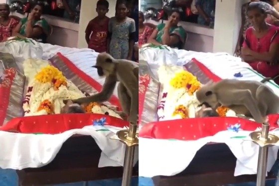 지난 22일 온라인 미디어 월드오브버즈에 따르면 스리랑카 동부 바티칼로아 주에 사는 피타바람 라잔(56)의 장례식에는 특별한 조문객이 찾아왔다. 바로 원숭이였다.