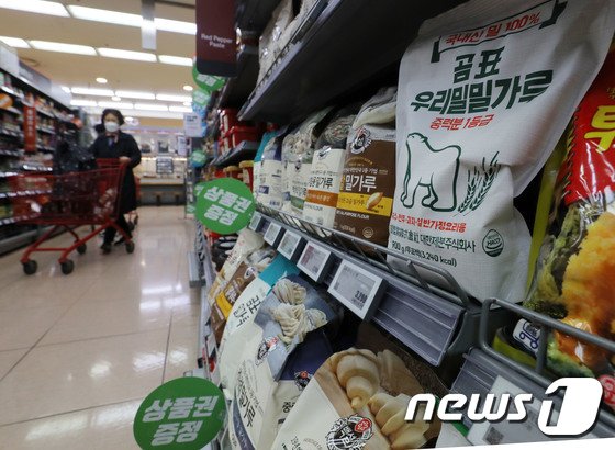 지난달 6일 오전 서울의 한 대형마트에서 밀가루를 판매하고 있다. 2022.4.6/뉴스1 © News1 박세연 기자