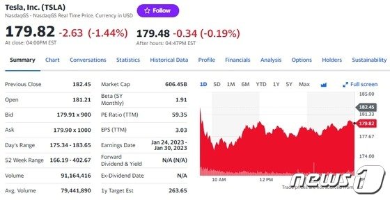 테슬라는 비교적 선방했다. 테슬라는 전거래일보다 1.44% 하락한 179.82달러로 장을 마감했다.