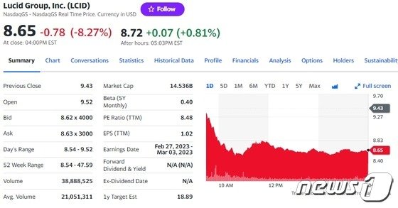 테슬라의 대항마로 불리는 리비안은 5.55% 급락한 27.89달러를, 루시드는 8.27% 급락한 8.65달러를, 전기트럭 스타트업(새싹기업)인 니콜라는 7.87% 급락한 2.46달러를 각각 기록했다.