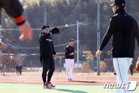 메이저리그(MLB) 토론토 블루제이스 류현진이 3일 오후 경남 거제시 하청스포츠타운에서 한화 이글스 스프링캠프에 합류해 훈련을 하고 있다. 2022.2.3/뉴스1 © News1 이재명 기자