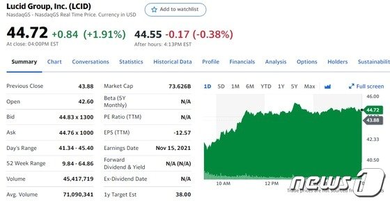 루시드 일일 주가추이 – 야후 파이낸스 갈무리