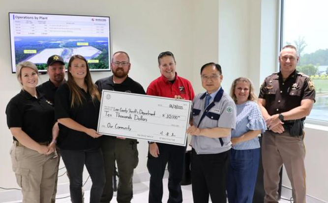 오펠라이카, 앨라배마WRBL- — 리 카운티 보안관실은 신화오토USA(Shinhwa Auto USA)로부터 1만 달러의 수표를 전달받았다고 목요일(현지시간) 발표했다. 이 기부금은 보안관실의 전반적인 훈련 프로그램 향상에 사용될 예정이다.