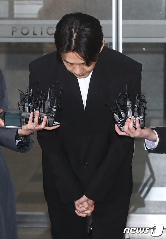 배우 유아인(본명 엄홍식)이 27일 서울 마포구 서울경찰청 마포청사에 출석해 마약 투약 혐의 관련 조사를 마치고 나오며 고개숙여 사과하고 있다. 2023.3.27/뉴스1 © News1 김민지 기자