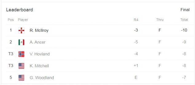 매킬로이는 최종합계 10언더파 274타로 2위 아브라함 앤서(멕시코·9언더파 275타)를 1타 차로 제치고 우승 트로피를 품에 안았다. 매킬로이의 이 대회 3번째이자 PGA투어 통산 19번째 우승.