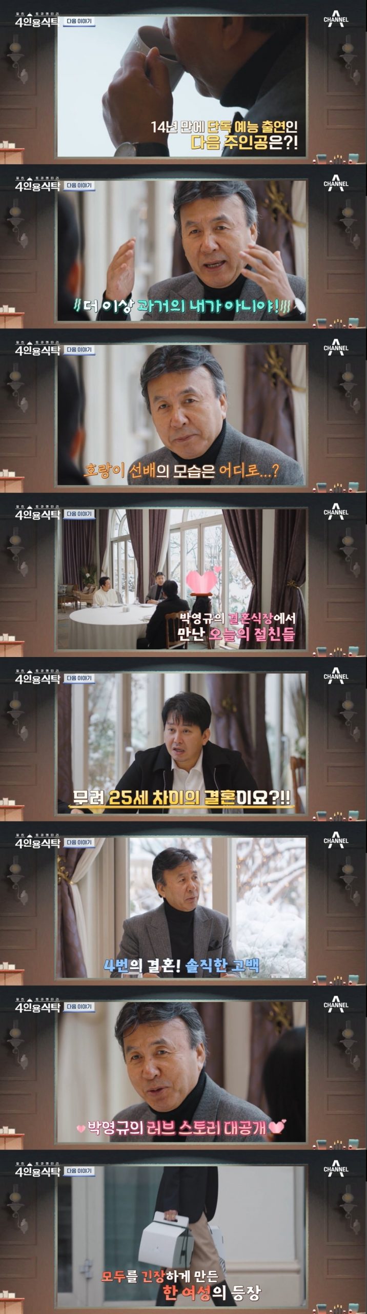 ‘절친 토큐멘터리 4인용 식탁’에서 배우 박영규가 25세 연하의 아내를 공개한다.