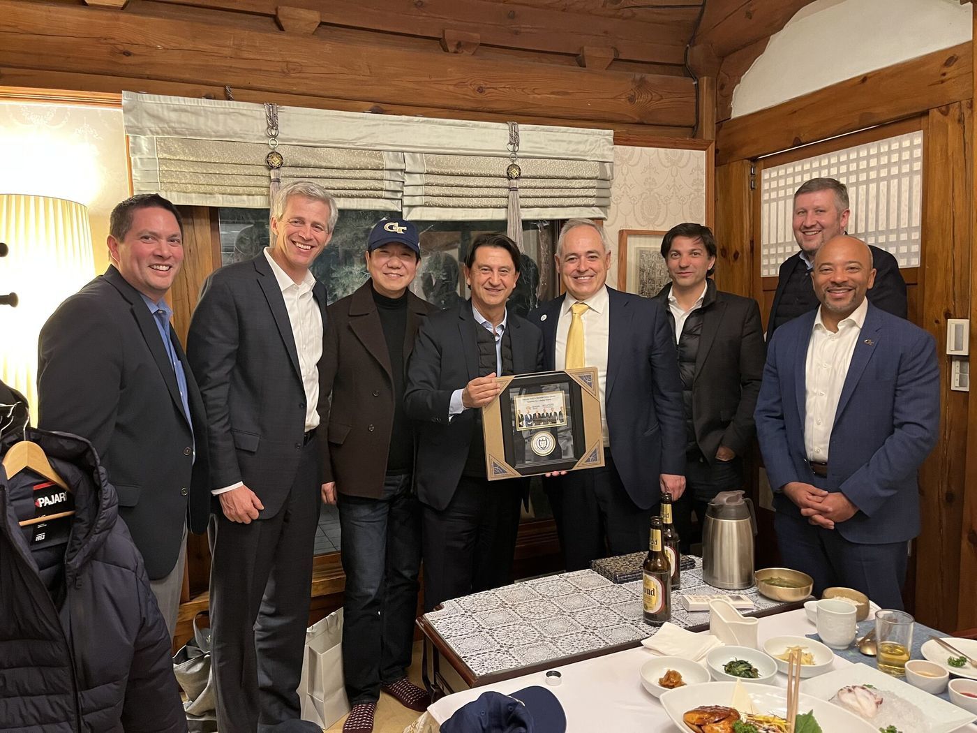 호세 무뇨스 현대자동차 사장(왼쪽 네 번째)이 서울 모처에서 앙헬 카브레라 조지아공대 총장(왼쪽 다섯 번째)과 만나 기념촬영을 한 모습(카브레라 총장 링크드인 갈무리). 2025.01.31.