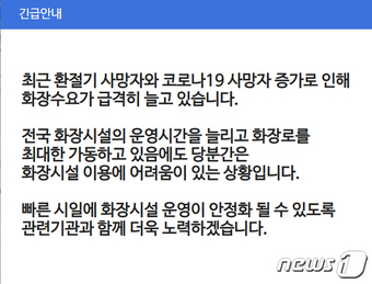 보건복지부 화장장 예약시스템에 올라온 공지문. © 뉴스1