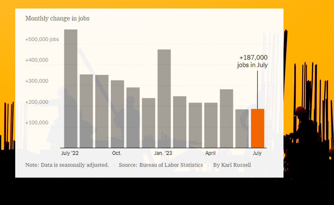 미국 노동부는 지난 7월 비농업 일자리가 전월대비 18만7000개 증가했다고 4일(현지시간) 발표했다.