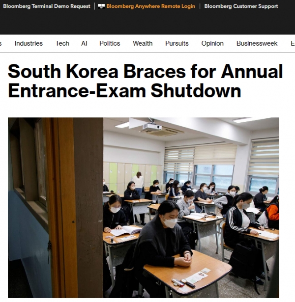 외신들은 또 한국의 수능이 사회적 이동성, 경제적 안정, 나아가 결혼에도 영향을 미칠 만큼 중요한 인생의 전환점으로 자리 잡고 있다고 강조했다.