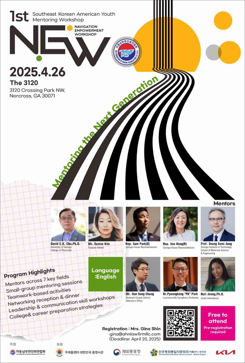 미동남부한인회연합회(회장 김기환)가 오는 26일 제1회 동남부 한인 차세대 멘토링 워크숍 행사를 예고하고 많은 관심과 참여를 당부했다.