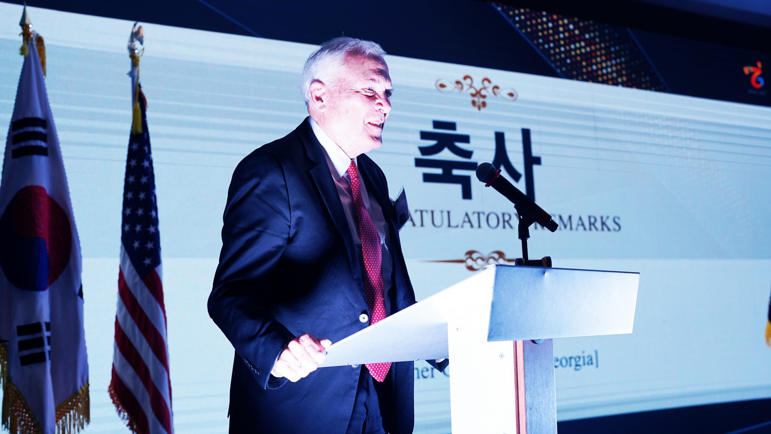 참석자들의 기립 박수를 받으며 무대에 오른 네이선 딜 전 조지아 주지사는 축사를 통해 한국 기업들이 잇달아 조지아주에 진출하면서 지역 경제에 기여 할 뿐 아니라 한미 관계 발전에도 큰 역할을 하고 있다고 밝혔다.