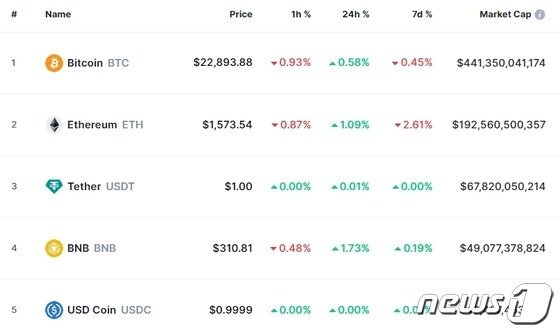 비트코인은 1일 오전 6시 50분 현재(한국시간 기준) 글로벌 코인시황 중계사이트인 코인마켓캡에서 24시간 전보다 0.58% 상승한 2만달2893 달러를 기록하고 있다.