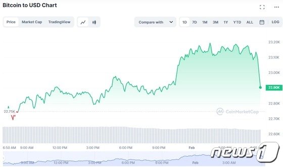 이날 비트코인은 최고 2만3194 달러, 최저 2만2657 달러 사이에서 거래되고 있다.