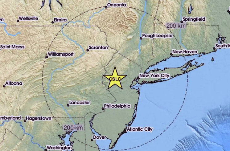 지진은 오전 10시 23분 발생했으며 진앙은 뉴저지주 화이트하우스 인근이었다. 진원까지의 깊이는 4.7㎞로 추정됐다.