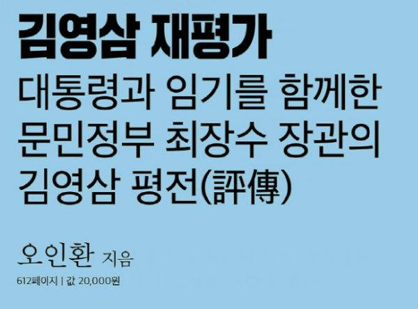 문민정부 공보처 장관을 역임한 오인환씨가 김영삼 전 대통령의 일대기를 다룬 평전을 펴냈다.