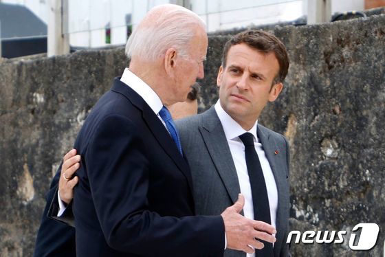 조 바이든 미국 대통령(왼쪽)과 에마뉘엘 마크롱 프랑스 대통령. © AFP=뉴스1
