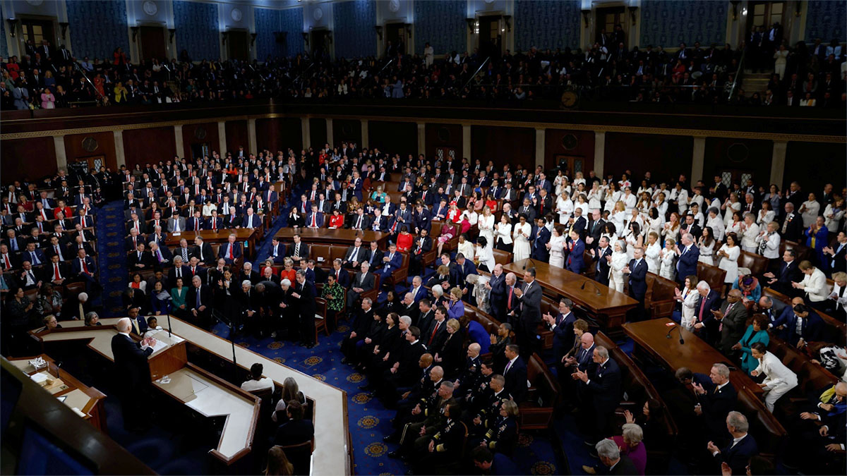 연설에 앞서 바이든 대통령은 트럼프 전 대통령을 강력 지지하는 마조리 테일러 공화당 하원의원을 보고 놀란 표정을 짓기도 했다. 그가 공화당을 상징하는 붉은색 차림이었기 때문이다.