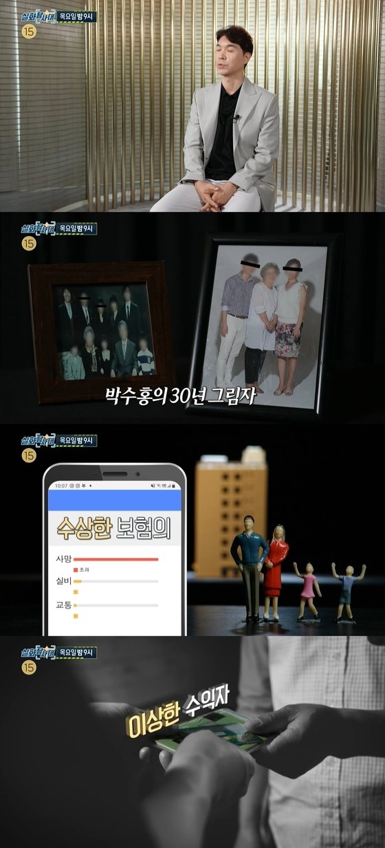 또한 ‘수상한 보험의 이상한 수익자’라는 자막과 함께 ‘사망했을 경우 형네 가족이 이익을 보는 구조’라는 설명도 이어졌다.