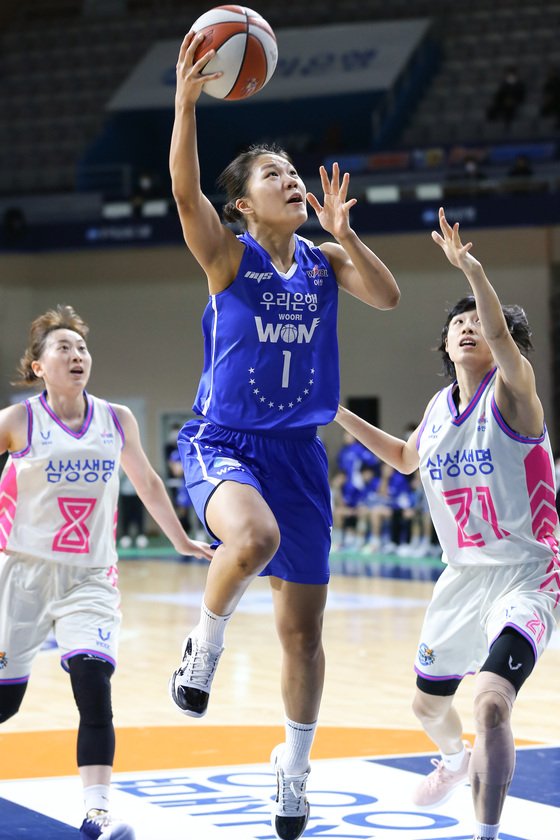 우리은행은 29일 경기 아산이순신체육관에서 열린 삼성생명 2021-2022 여자프로농구 경기에서 삼성생명에 56-47로 승리를 거뒀다.