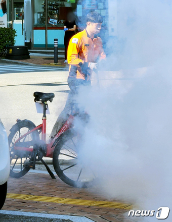 신고를 받고 출동한 소방당국은 전기 공유 자전거 배터리를 분리한 뒤 9분여 만에 불을 껐다. 다행히 인명피해는 발생하지 않았다.