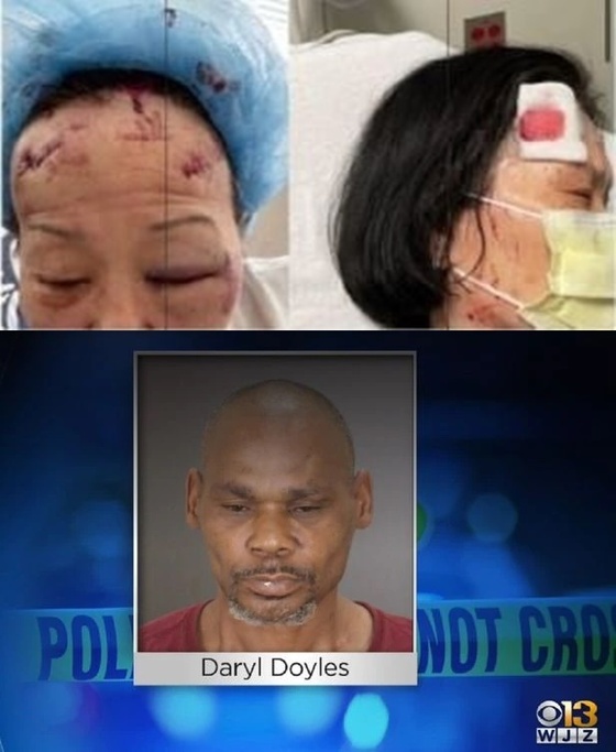 한인 자매(위)를 공격한 남성(아래). (미 볼티모어 지역방송 WJZ 갈무리) © 뉴스1