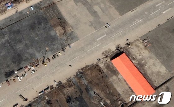 현지 소식통은 매체에 화물칸을 북한으로 끌고 갈 기관차 2량이 넘어간 것으로 보인다고 말했다.