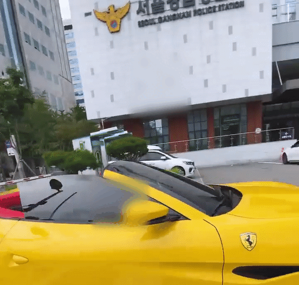 영상에는 한 노란색 고급 외제차가 등장한다. 이 차는 서울 강남경찰서 입구 차단기를 통과한 뒤 주차장 인근에 정차했다.
