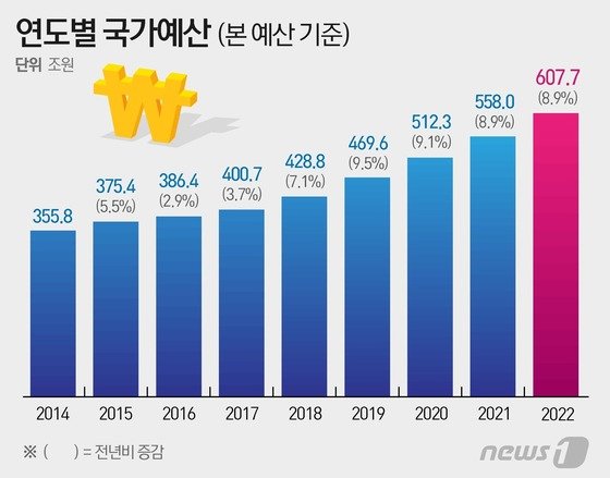 2021년은 ‘예산 600조원’ 시대를 연 한해였다. 코로나19 위기 극복을 위한 불기파한 측면이 있지만 예산이 는 만큼 빚도 늘어 국가신용등급 추락 등 역풍을 맞을 수 있다는 지적도 나온다.