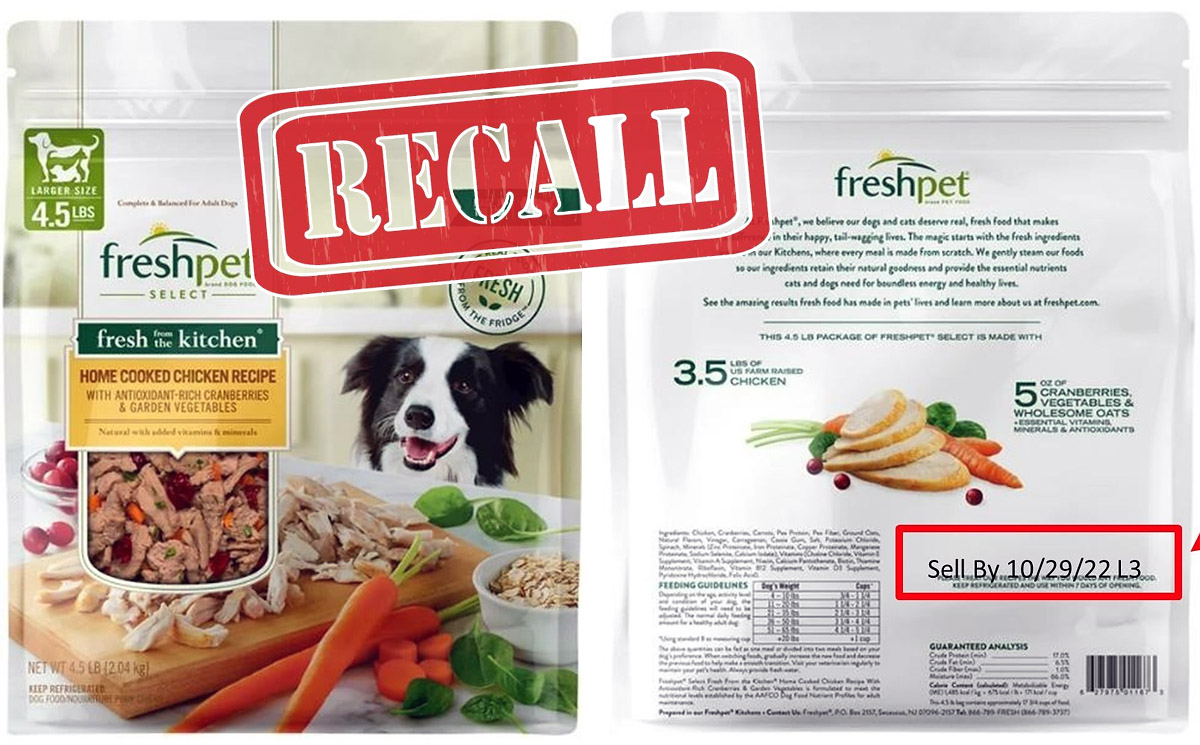 이 회사는 2022년 10월 29일까지로 유통기간이 적혀 있는 “Freshpet Select Fresh From the Kitchen Home Cooked Chicken Recipe”(4.5파운드 백) 제품을 살모넬라균 오염 가능성 때문에 리콜한다고 발표했다.