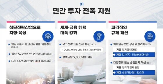 정부는 이에 발맞춰 민간 투자가 적기에 이행될 수 있게 세제·정책금융 지원, 인프라, 규제개선 등 연구개발부터 생산까지 전 단계에 걸쳐 민간투자를 뒷받침한다.