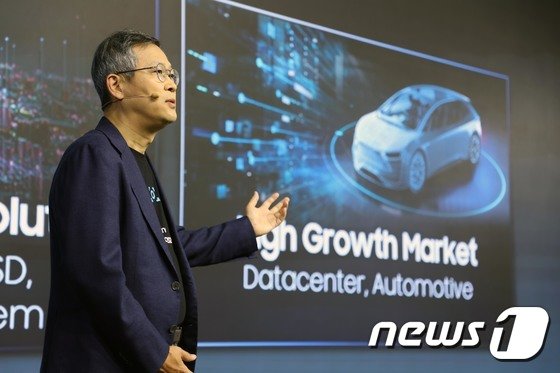 삼성전자 메모리사업부장 이정배 사장이 5일(현지시간) 미국 실리콘밸리에서 열린 ‘삼성 테크 데이 2022’에서 발표를 하고 있다. (삼성전자 제공) 2022.10.6/뉴스1