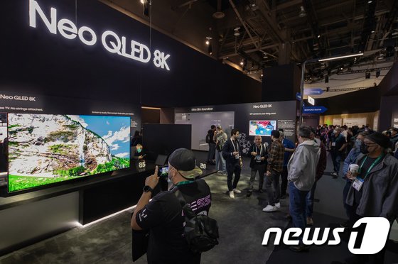 지난 1월5일(현지시간) 미국 라스베이거스에서 열린 'CES 2022'에서 삼성전자 전시관을 찾은 관람객들이 네오 QLED 8K를 체험하고 있다. (삼성전자 제공) 2022.1.7/뉴스1