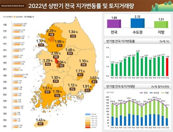 2022년 상반기 전국 지가변동률 및 토지거래량. © 뉴스1