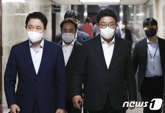권성동 국민의힘 원내대표가 30일 오후 서울 여의도 국회에서 열린 의원총회에 참석하기 위해 이동하고 있다. (공동취재) 2022.8.30/뉴스1 © News1 이재명 기자