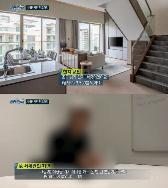 재혼 후 캄보디아에 정착한 서세원은 프놈펜 최고급 호텔 레지던스에서 거주했다. 현지 교민은 “조금 넓게 갔는데 복층이었다. (월세로) 3500달러(약 470만원)를 냈다”고 밝혔다.