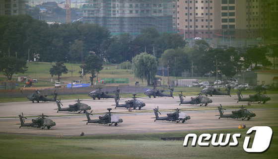 경기도 평택 소재 주한미군기지 ‘캠프 험프리스’에 계류 중인 미군 헬기. 2021.8.10/뉴스1 © News1 |