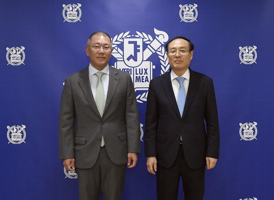 이날 서울대 관악캠퍼스에서 열린 업무협약식에는 서울대 오세정 총장, 이현숙 연구처장, 이병호 공대학장, 최장욱 화학생물공학부 교수와 현대차그룹 정의선 회장, 알버트 비어만 사장, 박정국 사장, 김걸 사장, 신재원 사장 등이 참석했다.