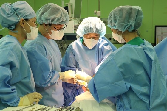 이새별 서울아산병원 유방외과 교수(오른쪽에서 두번째)가 유방암 환자를 수술하고 있는 모습(사진제공=서울아산병원) © 뉴스1