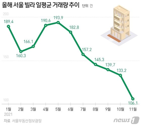 21일 서울부동산정보광장에 따르면 11월 서울 다세대·연립 거래량은 3183건이다. 하루 평균 106.1건 수준이다.